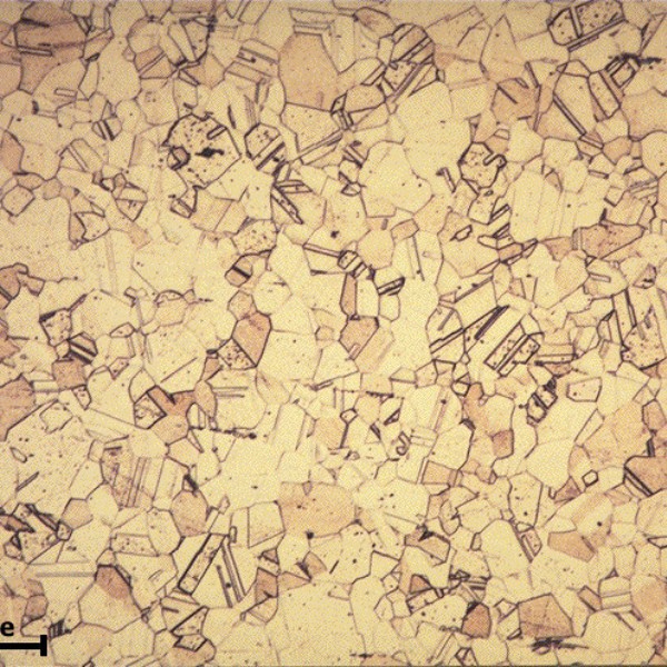 凭借高导电性,铜合金广泛用于电缆、开关元件、变压器、电动机绕组和发电机等领域。而铜合金良好的耐腐蚀性和热传导性使其特别适用于化学、食品和饮料工业的管路、容器和热交换器等。常见的铜合金可分为加工铜合金(紫铜、黄铜、青铜、白铜)、铸造铜合金(黄铜、青铜)、压铸铜合金(特殊黄铜)。铜和铜合金的金相检验内容主要是测量晶粒度,同时,也对在铸造过程、变形加工过程、热处理过程产生的显微组织和各种缺陷进行评估。通过铜合宏观组织检验判定常见的铜合金缺陷如:气孔、缩孔与缩松、裂纹、冷隔、铸造粗晶、外来夹杂物等;通过铜合金的微观组织检验可以分析铜合金的各组成相、晶粒度、夹杂物、铍青铜的晶界反应(铍青铜的时效脱溶过程包括在晶内的连续脱溶和在晶界处发生的不连续脱溶及再结晶反应)等。